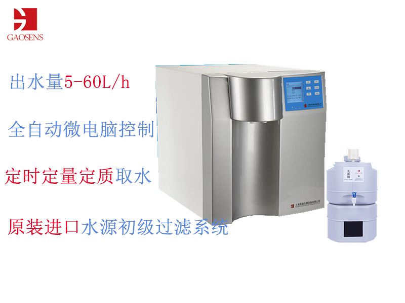 出水量10L; 分質取水,一機兩用;同時在線2路水質監控,實時監測純水和超純水水質;脫鹽率99%;原裝進口核級樹脂,全下垂流超純化柱設計,時刻保證水質;在線監測水路水溫