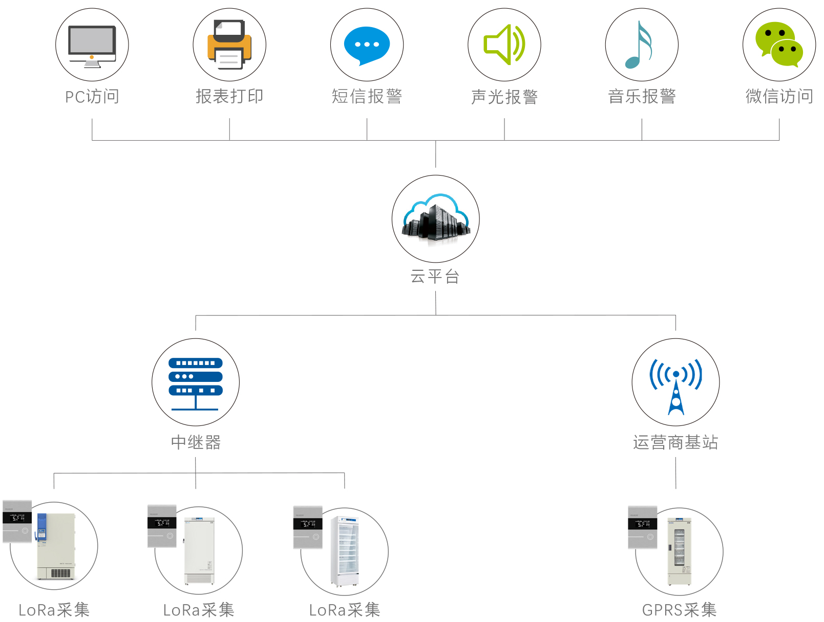 多重報警:實時聲光報警,短信、微信報警功能同步啟動,多重預警保障樣品安全;