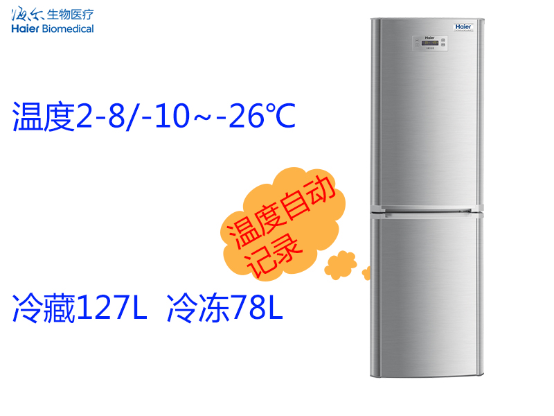 海爾藏冷凍保存箱HYCD-205,冷藏2~8℃ ,冷凍-10~-26℃;冷藏127L冷凍78L;冷藏室超大容量;冷凍室雙密封,保溫好; 內(nèi)膽全不銹鋼;冷藏冷凍雙顯,冷藏室、冷凍室溫度顯示,一目了然;溫度自動記錄,自動存儲,帶U盤即插即用;高低溫、傳感器故障、斷電等多重自動聲光報警